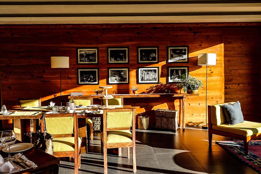 Among pine-clad forests on the outskirts of Thimphu, The Postcard Dewa is a luxury resort in Bhutan offering 15 boutique rooms and suites. With serene views of the Khasadrapchu Valley and Wang Chhu River, this boutique hotel in Thimphu features elegant Dzong-inspired architecture. Each sunlit suite opens onto a private sit-out and is enriched with traditional Bhutanese motifs, offering a refined stay. You can relax in heated indoor pool, unwind with yoga, meditation, and rejuvenating holistic spa therapies including authentic Bhutanese hot-stone baths. Dining celebrates gourmet Bhutanese cuisine crafted with seasonal local produce. Perfect for a mindful wellness retreat in Bhutan, the Postcard Dewa blends luxury comfort with alpine tranquility – just minutes from the capital city, yet worlds away.